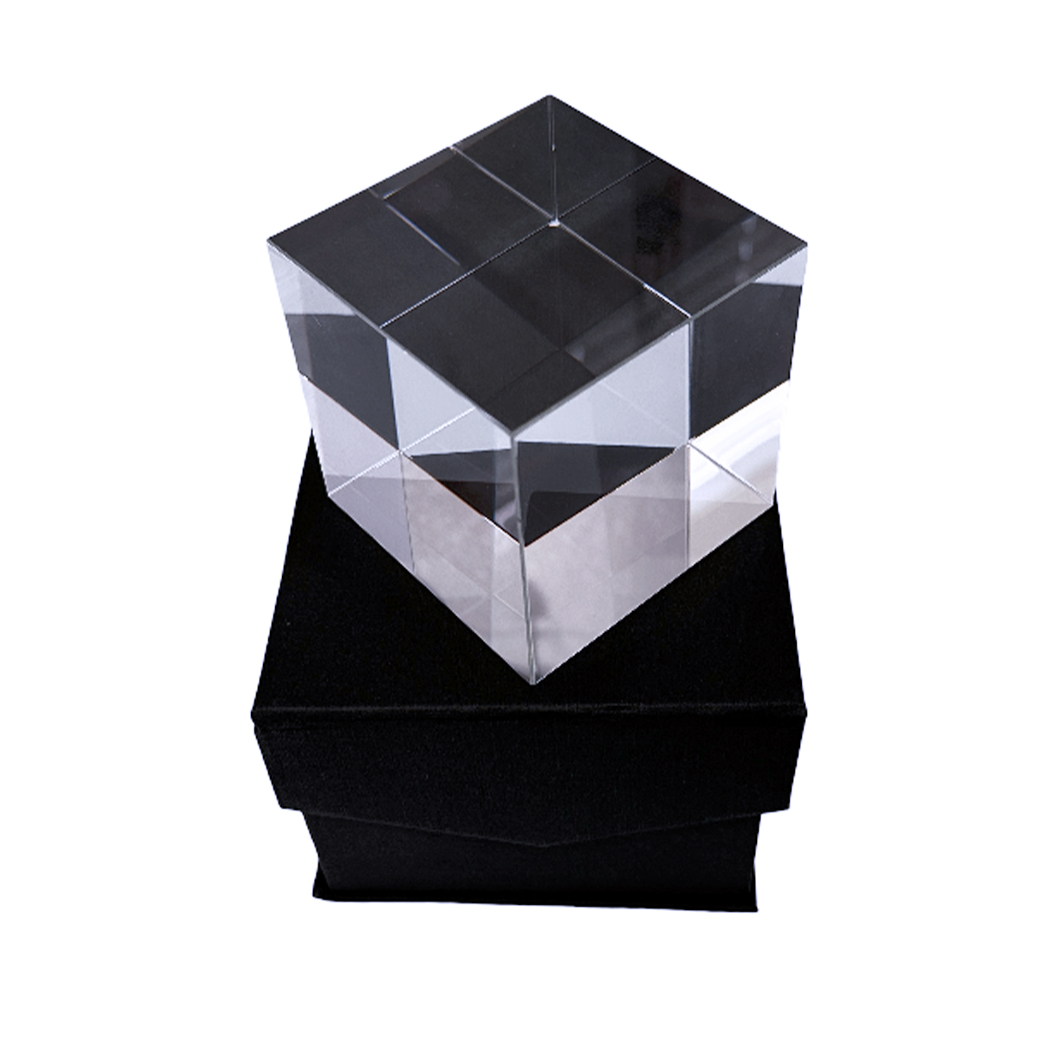 - CRYSTAL CLARITY: Optically clear cube with precise 90-degree angles and smooth, polished surfaces on all six sides